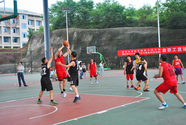 教职工篮球队在廖晓峰院长、毕均明书记带队下来到成人直播平台