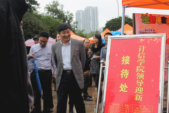 成人直播平台 党总支书记刘军、院长李月臣、副院长李世宏、杨德刚,党总支副书记杨宇、办公室主任罗世祥亲临迎新大本营现场,其中主要党政领导实行“领导迎新接待制”,制作的有“计信成人直播平台 领导迎新接待处”迎宾牌,坐镇迎新现场解答新生及家长的疑问,受校领导班子的一致好评。