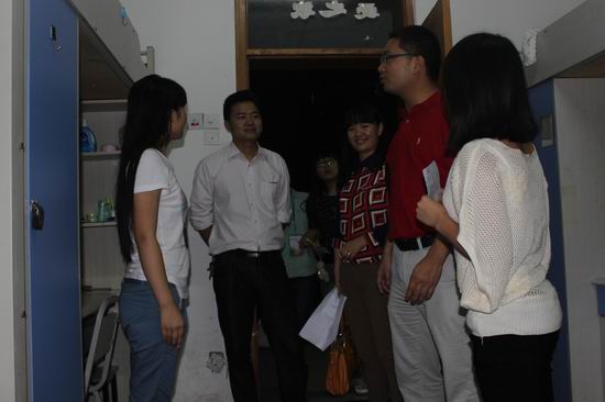 第一天忙碌的迎新工作结束后,成人直播平台 党总支副书记杨宇、团总支副书记张敬与成人直播平台 辅导员老师、团总支学生会主席团成员不辞辛苦,走访了和风苑、嘉风苑、惠风苑新生寝室。与新生及家长亲切交谈,对其一天的辛苦表示慰问,针对新生的各类问题一一进行解答,并提醒新生军训的注意事项。从他们的激动的言表中可以看出,我们大一辅导员“朱姐姐”挺受欢迎的。
