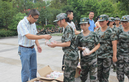 接着,成人直播平台 领导和辅导员老师们为辛劳的部队教官及每一位军训新生发放了节日慰问品。同学们面带微笑,整齐列队,有礼貌有秩序地一一领取。