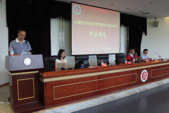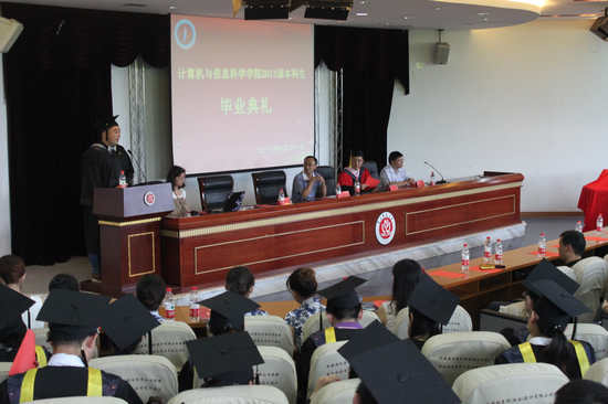党总支书记刘军,副院长魏延,办公室主任罗世祥,团总支副书记张敬,教师代表李明、陈勇、蕾蕾、龚伟、陈娟娟等,2013届全体毕业生参加本次典礼,典礼由计信成人直播平台