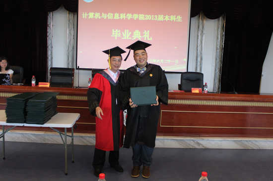 首先,杨宇副书记宣布毕业典礼的正式开始,2013届毕业汇报专题片:《来不及说再见》为典礼拉开了序幕。在座的235名毕业生安静地观看着,四年充满酸甜苦辣的大学生活在脑海中重演,思绪万千。在这怀旧的气氛里,迎来了毕业典礼最为庄重的一刻。魏延副院长宣读授予2013届毕业生学士学位的决定,并由马燕院长为毕业生授予学士学位、颁发学位证书并合影留恋。毕业生们郑重地接过自己的学位证书,历经大学四年洗礼的他们越来越成熟稳重。紧接着,马燕院长和刘军书记为成人直播平台