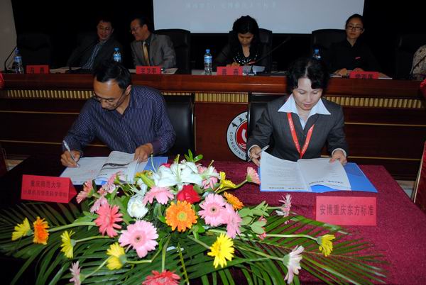 ——安博重庆东方标准战略合作签字暨“大学生就业扶持公益计划”启动仪式在凯撒报告厅隆重举行。出席本次活动的嘉宾有校党委龚燕副书记、学生处党亚莲处长、教务处胡芳副处长,安博重庆东方标准公司王卫平董事长、金琦校长,成人直播平台
