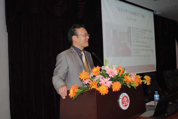 在随后的“重塑IT学子思维模式”讲座中。重庆东方标准董事长王卫平先生分别从人生价值、成功标准、就业准备等方面为大家详细讲解,对现场提问的同学免费赠送励志的书籍。