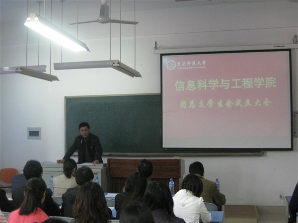 党总支刘军书记,马燕院长、杨晓红副院长、魏延副院长、党总支李晓燕副书记、办公室罗世祥主任以及辅导员张敬老师。院团总支学生会学生书记邓晓霞主持此次会议。