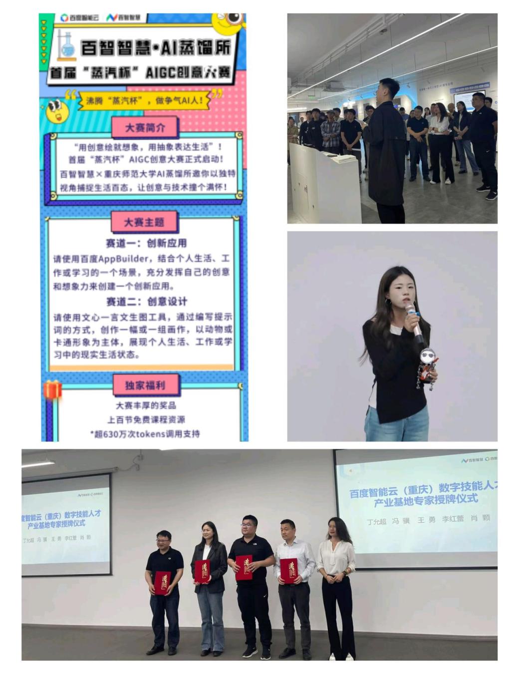 冯骥副院长、软件工程系主任肖颗老师率师生代表团参访百度百智智慧,参加“第三届职业技能大赛AI工程技术赛项重庆集训交流会暨'蒸汽杯'AI创意大赛发布会”。活动在百度智能云重庆基地举行,通过技术研讨、专家交流和赛事发布,为师生提供了接触行业前沿的宝贵机会。