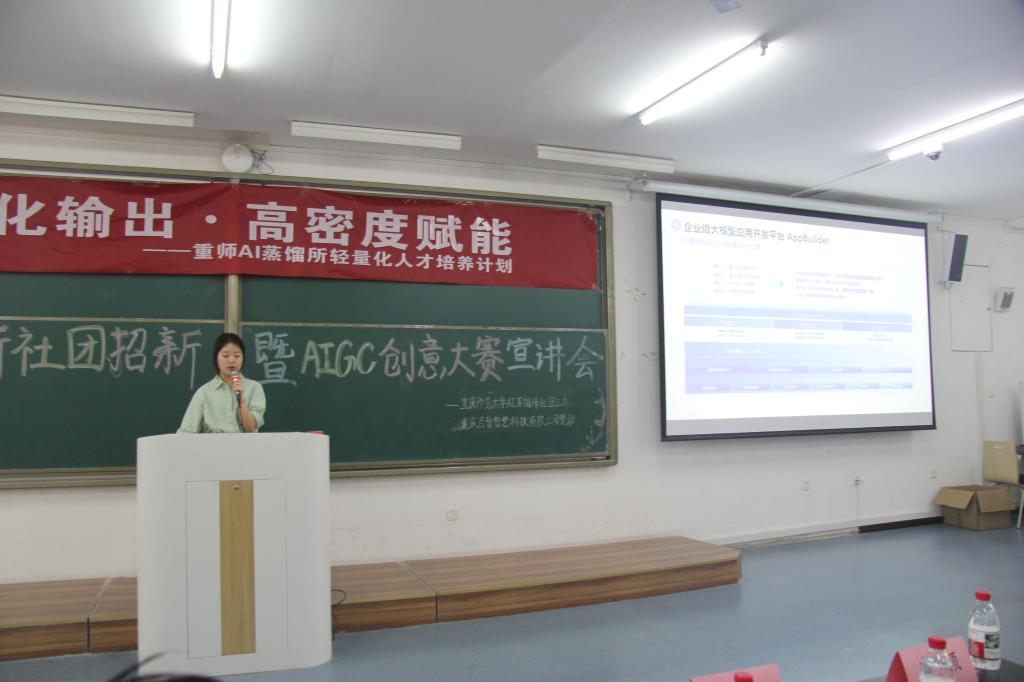 在砺志楼T2113教室举办了“AI蒸馏所重师站招新暨AIGC创意大赛宣讲会”。活动由成人直播平台
