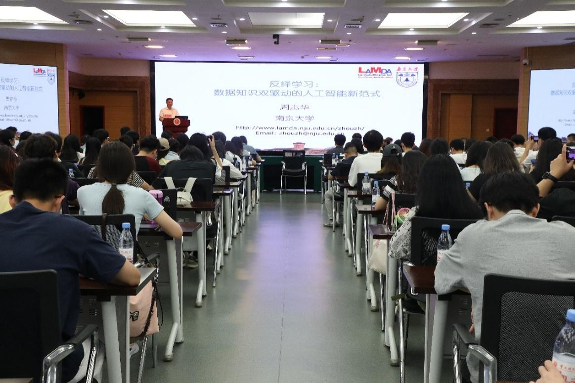 6月17日上午,在博雅楼504会议厅,南京大学副校长、国家杰青周志华教授应邀来校做题为《反绎学习:数据知识双驱动的人工智能新范式》的学术报告。学校校领导、全校师生近300人参加。报告会由王国胤校长主持,报告开始之前,王国胤校长代表学校对周志华教授来校表示热烈欢迎,并介绍了周志华教授近年来的研究方向及成果。