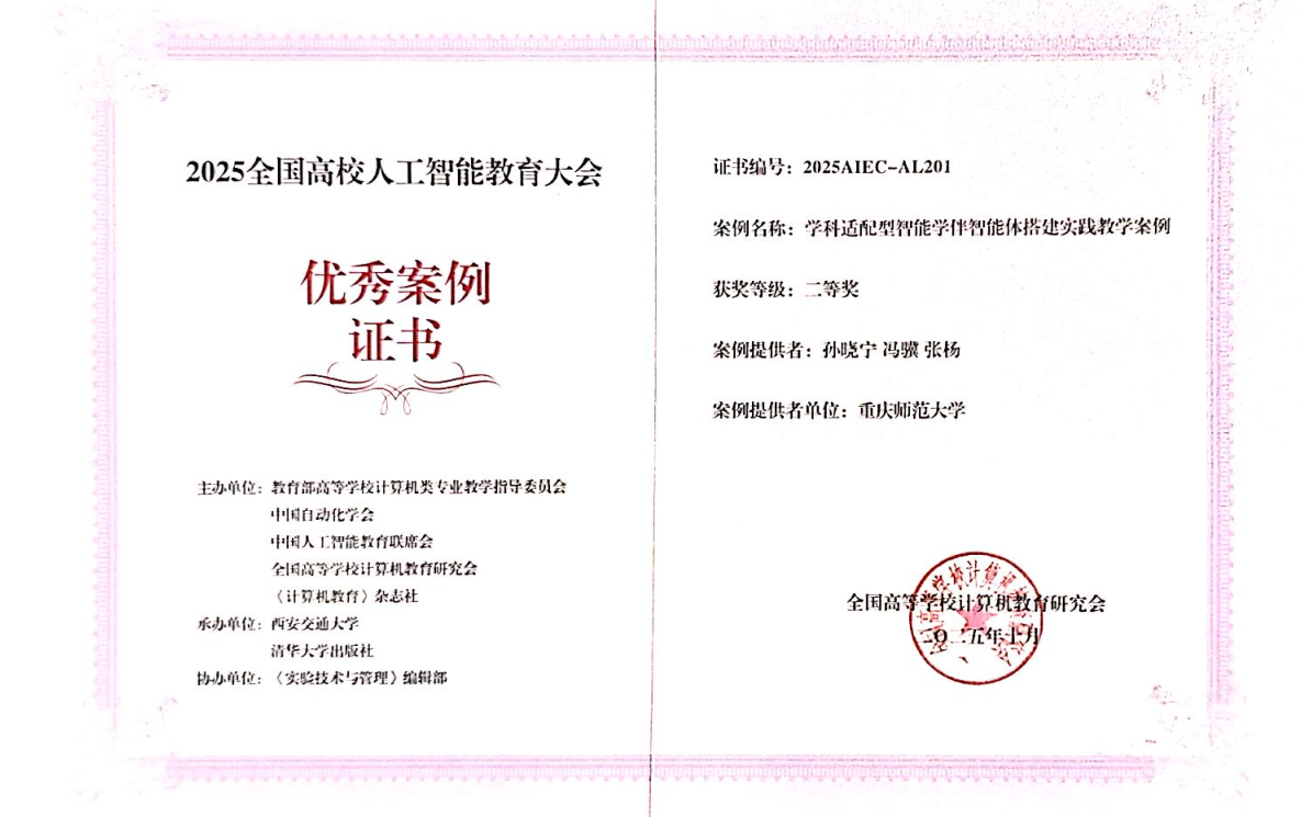 教师孙晓宁、冯骥、张杨提交的《学科适配型智能学伴智能体搭建实践教学案例》荣获课程教学案例二等奖,体现了成人直播平台