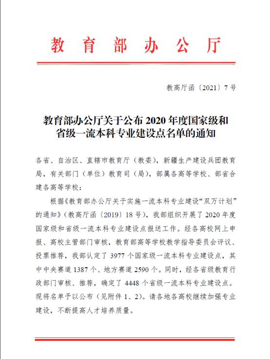 近日,教育部下发了《教育部办公厅关于公布2020年度国家级和省级一流本科专业建设点的通知》(教高厅函[2021]7号),成人直播平台 软件工程学专业入选国家级一流本科专业建设点,实现了成人直播平台 本科专业建设国家级项目的突破。