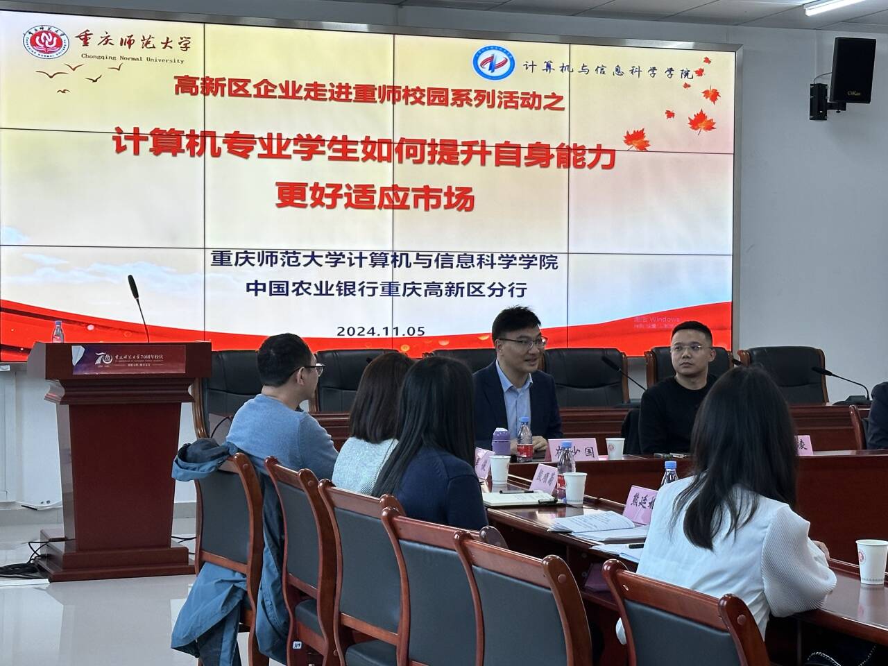 学科专业、人才队伍、对外交流服务等基本情况,对本届学生的人才培养情况进行了重点介绍。瑞河储能首席运营官邹佳凌博士分享了自身求学经历,介绍了计算机科学与金融在新能源行业的深度结合,强调企业对人才的需求定位以及大学生职业规划的重要性,他认为大学生应该心怀“国之大者”立大志,抓紧时机学好专业技术,让未来在大国重器、关键领域等贡献自身力量。