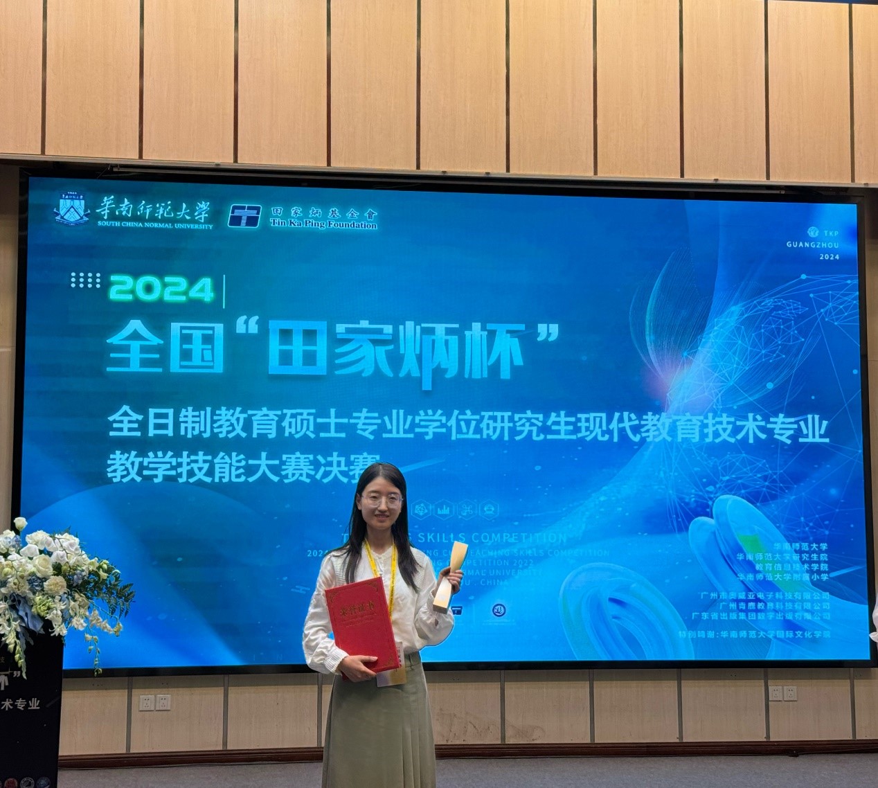 现代教育技术专业硕士生张千雪、陈澳、李昊瞳晋级决赛,并在比赛中表现突出。其中张千雪同学荣获一等奖,陈澳、李昊瞳同学荣获三等奖,申文缙获“优秀指导教师”称号。