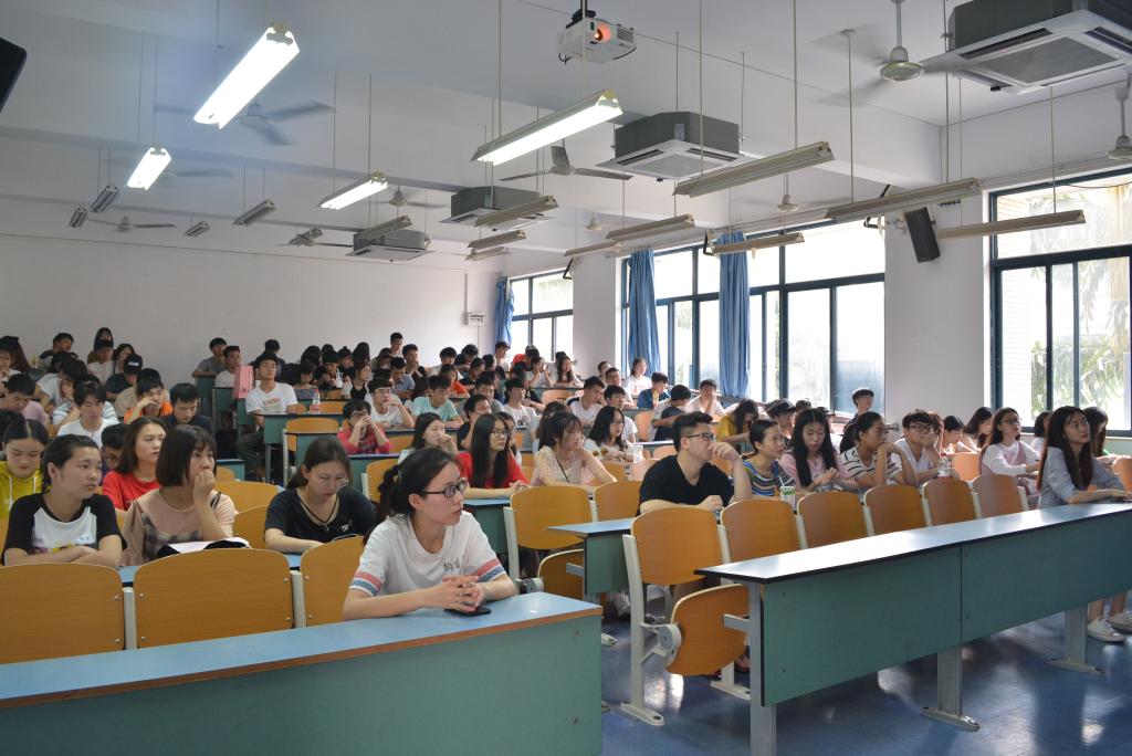 宣讲开始时,主持人桂欣蕾、刘叙敏、张智勇、何小琴首先做了本次宣讲主题的引入、环节和六位宣讲人基本情况的介绍。本次宣讲主要设有宣讲、答疑两个环节,六位宣讲人通过结合自身的经历,分别对有关考研和就业两个方面的问题进行宣讲和答疑。详细阐述了他们各自从大学伊始迷茫到最后找到自己的目标,通过不断调整心态,到最后走向成功从而总结出自己的心得,并给出了自己对待某些问题的方法和建议。