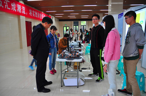 的科技作品获得了校领导和同学的青睐,周泽扬校长亲自莅临展示区,加以褒奖并给出宝贵的意见。