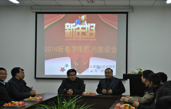 会上,刘军书记首先向各位同学致以最诚挚的问候,他与大家一起回顾成人直播平台 成立以来取得的佳绩,鼓励大家珍惜大学时光,为计信成人直播平台 的成长添砖加瓦。接着,各位老师与同学们作了亲切交谈,详细了解了同学们的家庭基本状况、学习情况、在校生活情况。最后,领导老师们一起给同学们送上了新年的祝福和小礼物,祝愿大家能够与家人度过一个欢乐、温暖、祥和的春节。