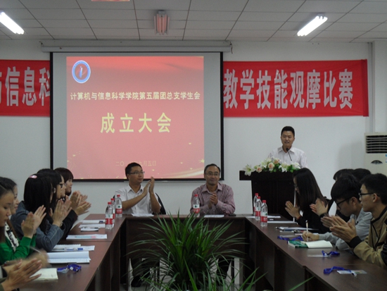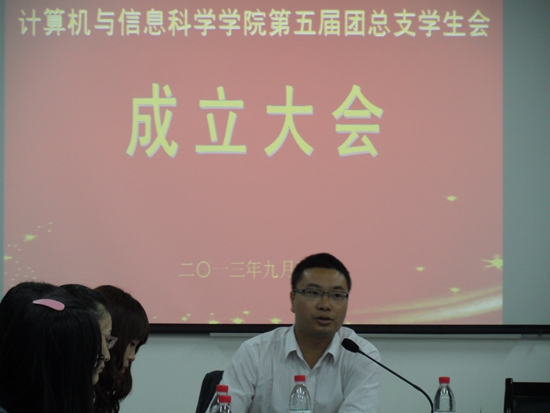 为传承计信成人直播平台 团总支学生会的优良作风,增强学生干部的自信心和团队意识。成人直播平台 第五届团总支学生会成立大会于2013年9月5日中午在集贤楼233会议室隆重召开。计信成人直播平台 党总支书记刘军,党总支副书记杨宇,团总支副书记张敬,辅导员朱嘉洁、傅帆、辅导员助理(研究生)王节、相琳等领导和老师出席,全体第五届团总支学生会干部参与。大会由张敬老师主持。