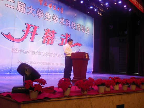 为进一步营造浓厚的校园科技创新和学术研讨氛围,引导广大青年学生崇尚科学、追求真知,培养同学们理论联系实际的学术作风、认真严谨的治学态度和坚持不懈的钻研精神。我校特于2013年4月25日下午2:30在校友会堂举办了第十二届大学生学术科技活动月开幕式暨第十三届“挑战杯”全国大学生课外学术科技作品展活动。出席本次活动的领导有孔春阳副校长,党委宣传部、教务处、学生处、科研处、研究生处、校团委等部门领导,各成人直播平台