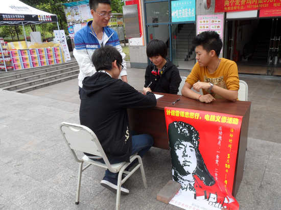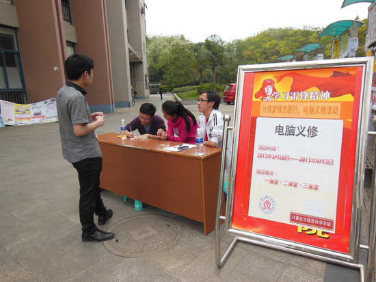 团总支学生会各部门协调合作共同举办了以“书写我的雷锋日记”为主题的电脑义修活动。通过专业与奉献相结合,为全校师生服务。活动于2013年3月28日下午2:00,在我校各个食堂火热开展。据悉,活动周期为一周,此次活动由成人直播平台