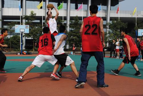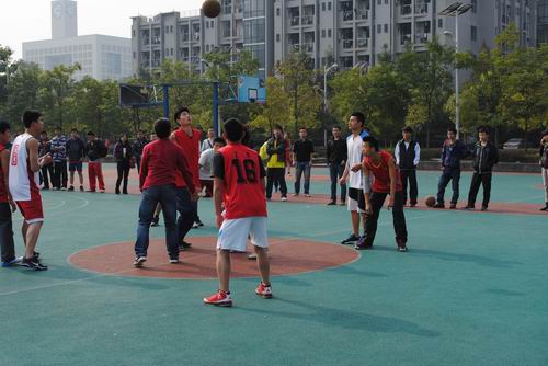 友谊篮球赛于我校篮球场举行。来自物电成人直播平台