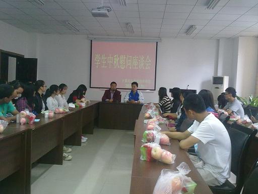 党总支副书记杨宇、团总支副书记张敬、11级辅导员孙柳艳、12级辅导员傅帆老师于2012年9月29日中午与30名各专业贫困学生代表在集贤楼233会议室度过了一个师生情浓的中秋节,而且成人直播平台