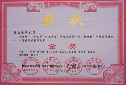 成人直播平台 2009级计算机科学与技术专业学生段新与重庆医科大学学生组队申报的“‘心之舟’创业项目”项目荣获第八届“挑战杯”中国大学生创业计划竞赛重庆赛区金奖。