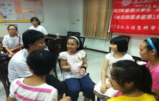 ,计信暑期大学生“三下乡”社会实践服务团第16分队的爱心家教组的10名志愿者前往重庆市渝中区临江门社区服务中心进行义务家教,与当地的16名小孩结对子。临江门社区被誉为“共青团市民学校示范点”并与成人直播平台