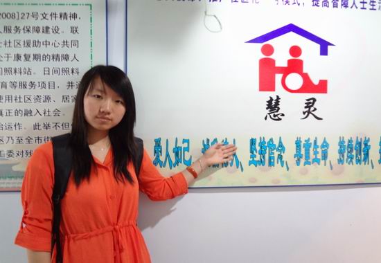 在惠灵所在的社区里,三位志愿者牵好横幅,抬来饮用水,齐心协力做好了残疾人运动会的准备工作。接下来,负责人带领志愿者们参观了残疾人们的住所和活动场所。初见他们,个个脸上都洋溢着纯真幸福的笑容,三者愿者走上去跟他们说话,虽然他们说的话我们不能完全听懂,但是我们却感到他们纯真的话语里边藏着一颗健康快乐的心。