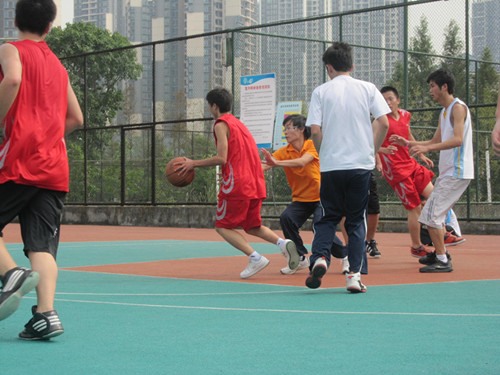 比赛开始了!呐喊声、加油声、跑步声、鼓掌声……整个篮球场沸腾了。进攻、受阻,一次又一次的穷追不舍;防守、抢球,一次又一次的抵抗强烈攻势。赛场内,队员们挥汗如雨;赛场外,拉拉队们呐喊着,兴奋着,更感动着!