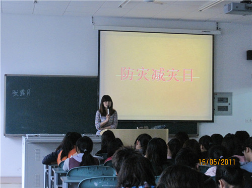 2009级辅导员朱嘉洁老师于2011年5月15日晚7:00在5205开展了“防灾减灾”的主题班会。