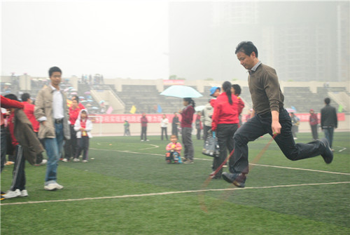 上午9:00,学生组100米、4×400米,教职工组立定跳远、抛实心球……各项赛事依次展开。绿茵场上,主角们挥汗如雨,上演着力量的比拼与意志的较量:有200米的健步如飞,有百米跨栏的势如破竹,有5000米的竭尽全力……观众席上,拉拉队们放开喉咙,让掌声与呼声冲向云霄,化成雨露滋润着每一名运动员的心田。场内风雨无阻、场外声嘶力竭,一场体育的盛会、一群飒爽的英姿跃然眼前,蔚为壮观。