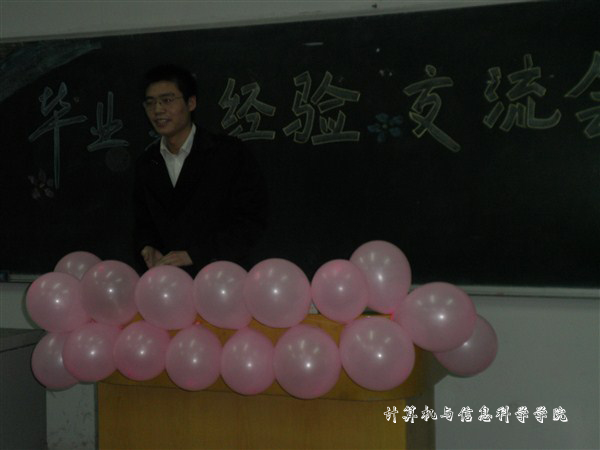 分别在老校区1301教室和大学城4404教室举办了毕业生经验交流会。2007级全体同学参加了此次会议。2006级各就业方向的十位毕业生代表出席了本次会议。
