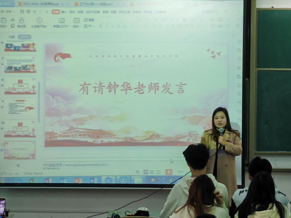 团委书记、学工办主任钟华老师到场指导,全体青马中级班学员到场参会,青马初级班学员线上观摩。