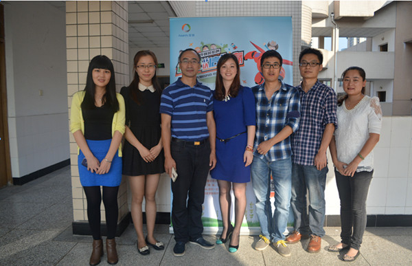 刘军书记、傅帆老师与公司代表、参加宣讲会部分学生留影