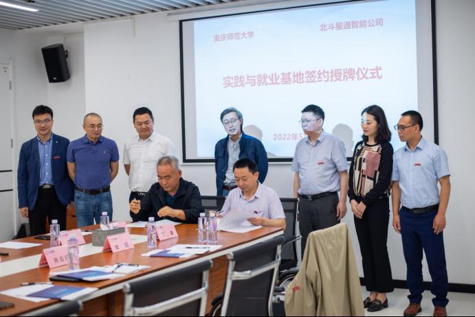 随后,成人直播平台 党委常委、纪委书记肖应红与北斗星通重庆分公司总经理李绍云签署了“实践与就业基地”协议并授牌。