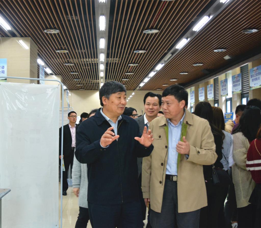 陈兰书记和魏延院长等活动负责人的陪同下,参观了招聘现场。校领导与个别企业代表交谈,并祝愿他们,招聘取得满意成果。