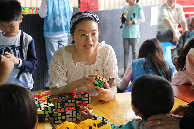 学生实践能力,同时也让小朋友体验了魔方带来的乐趣,培养了小朋友们手、眼、脑的协调能力。此次志愿服务,充分发挥党员作用,提升党员使命感,增强支部组织力和凝聚力,具有非凡的意义。