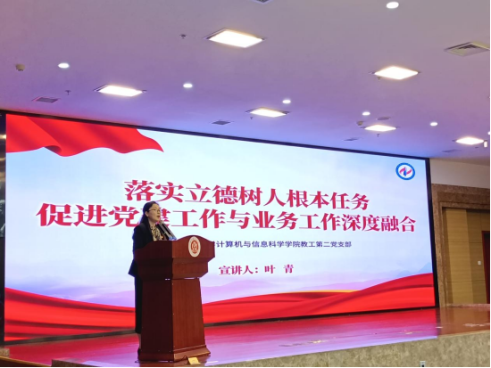 经过激烈角逐,共评选出特等奖2名、一等奖4名、二等奖6名、三等奖6名。成人直播平台 教工第二党支部书记叶青代表成人直播平台 参赛,获得二等奖第一名的好成绩。她以“落实立德树人根本任务,促进党建工作与业务工作深度融合”为题进行理论宣讲。宣讲结合支部工作实际,阐释如何从机制融合、队伍融合、评价融合三方面拓展融合途径,从“党建+课程思政”“党建+科技创新”“党建+服务社会”三个维度创新融合模式,实现“一融双高”的新时代高校党建和事业融合发展思路。在答辩环节,针对案例准确地阐明了党费的使用规则和范围,得到评委的一致认可。本次大赛既是展示风采的舞台,更是互学互鉴的平台。赛事充分展现了我校党支部书记队伍“政治强、业务精、作风正”的优良素质,为推进基层党建高质量发展注入新动能。