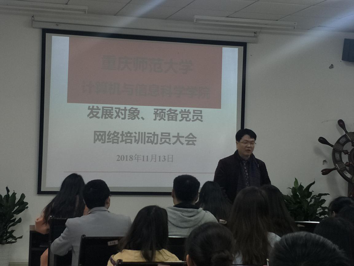 为加强发展对象、预备党员对网络学习流程的了解,增强网络学习的积极性。为此,2018111313时,成人直播平台 特于成人直播平台 楼213教室开展发展对象、预备党员网络培训动员大会。本次活动由孙柳艳主持,成人直播平台 党委副书记何东老师、学生二支部书记刘宇、学生三支部书记钟华出席,全院参加此次网络学习的发展对象、预备党员共计72名同学参与学习。