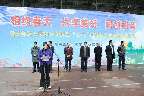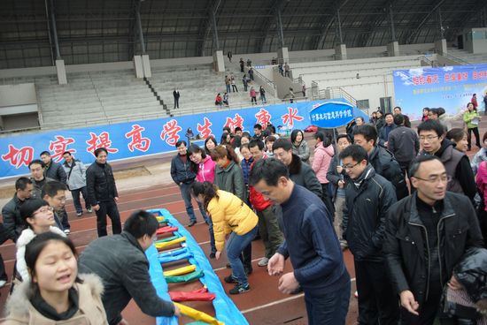 “相约春天、共享美好、同创和谐”。3月8日下午,由校工会主办的一场别开生面的庆“三八”趣味体育活动在大学城校区田径运动场隆重举行,来自各成人直播平台 、部门工会的23支由男女教职工混合组成的队伍及啦啦队近千人参加了此次活动。成人直播平台 教职工在院党政的大力支持下,在成人直播平台 工会的认真组织下,齐心协力,顽强拼搏,再一次在全校性活动中谱写辉煌,勇夺团体总分第四名,荣获二等奖。
