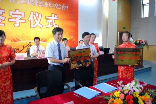 马燕院长与富士康科技集团(重庆)信息中心高世忠副总经理签订了合作协议并相互进行基地授牌,教务处洪全处长、学生处党亚莲处长为富士康科技集团(重庆)高世忠副总经理、陈彦志副理颁发了成人直播平台