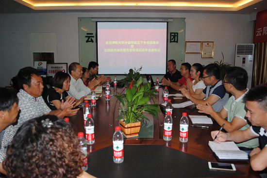 网上市民学校云阳站的授牌。在接下来的两天里,电子商务服务团成员还深入云阳县农技协21个会员企业基地进行实地考察调研。在调研期间,我校服务团成员走访周边农村地区,对地区内农民的电子商务认知度进行问卷调查并为之普及相关知识。之后便与可口吧智慧农业有限公司举行微信平台技术研讨会,为企业量身定制微信平台,并签署关于后期合作建设网络商城等电商平台、开发自动控制系统及软件、开发互联网在农业中的应用和物联网嵌入互联网技术等的协议。并在规定的期限内,将云阳县农技协微信平台与“牛丫头”微信销售平台交付给农技协及相关企业。
