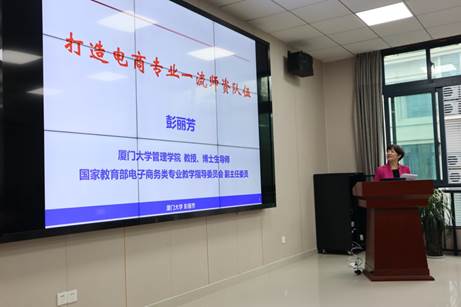 彭丽芳教授作《国家一流电子商务专业师资队伍建设》报告。彭教授详细介绍了教育部高等教育学校电子商务类专业教学指导委员会为推进电商一流专业建设而开展的细致精心的工作,并指出未来要继续紧扣新时代高校四十条,打造具有高尚品德、教学团队、持续学习、高超的教学能力的“四有”好老师。