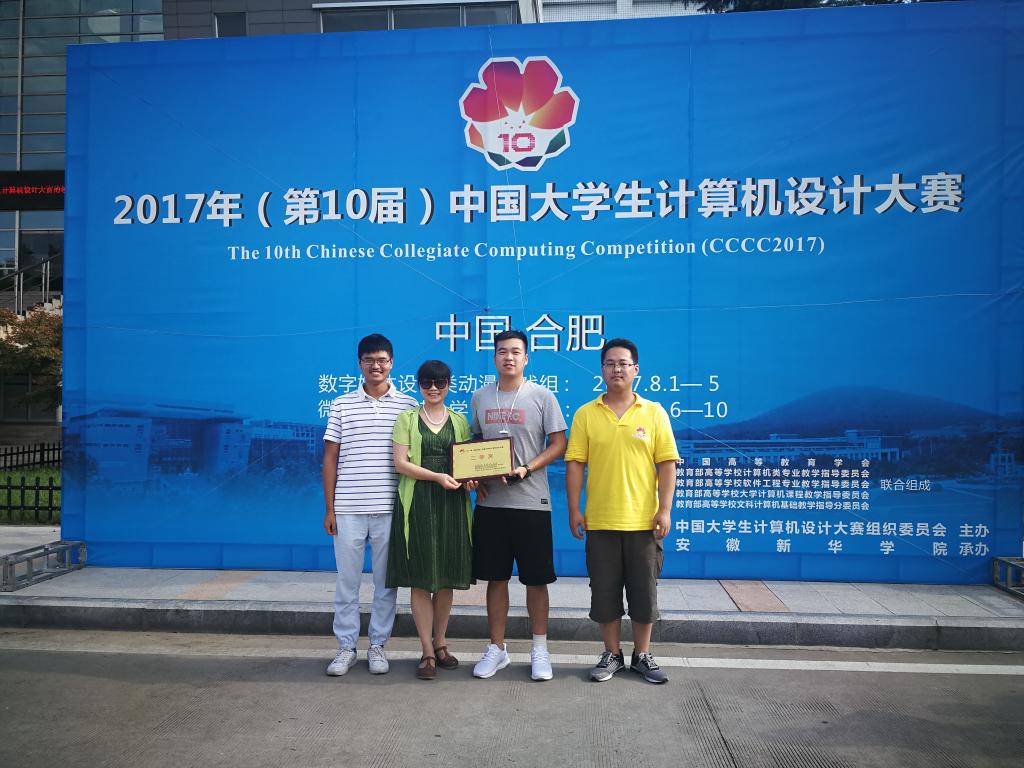 2017年8月5日至8月9日,由中国大学生计算机设计大赛组织委员会主办的第十届中国大学生计算机设计大赛微课与教学辅助类决赛在合肥安徽新华成人直播平台 隆重举行。第十届中国大学生计算机设计大赛(微课与教学辅助类现场决赛)有来自184所高校的444件作品参赛,参赛学生1400余人,经过为期两天的精彩角逐,产生一等奖31名,二等奖151名,三等奖262名。成人直播平台 计算机科学与技术专业2015级石安、陈通、蒋状三位同学的作品《AVL树的定义》最终取得了二等奖的好成绩。中国大学生设计大赛由教育部高等学校计算机类专业教学指导委员会、教育部高等学校软件工程专业教学指导委员会、教育部高等学校大学计算机课程教学指导委员会、教育部高等学校文科计算机基础教学指导分委员会联合组成的中国大学生计算机设计大赛组织委员会主办。大赛旨在进一步落实和推动高等院校面向21世纪的计算机教学知识体系、课程体系、教学内容和教学方法的改革,引导学生踊跃参加课外科技活动,激发学生学习计算机知识技能的兴趣和潜能,为培养德智体美全面发展、具有运用信息技术解决实际问题的综合实践能力、创新创业能力以及团队合作意识的复合型人才服务。